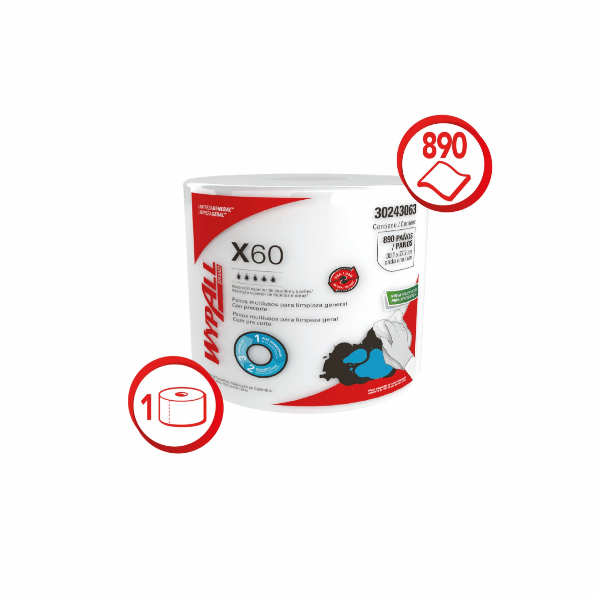 El Paño de Limpieza WypAll® X-60, rollo de 890 unidades, ofrece limpieza eficiente y durabilidad para entornos industriales y comerciales. Ideal para talleres, cocinas y oficinas que requieren paños de alto rendimiento. Perfecto para empresas, pymes y distribuidores que buscan eficiencia y resistencia en limpieza profesional.